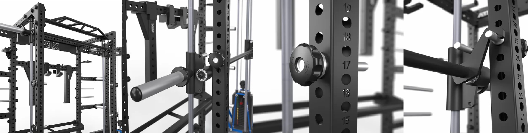 Šest zaklepnih zatičev je mogoče hitro in enostavno nastaviti na poljubno višino, kar omogoča individualno nastavitev položaja začetne in končne pozicije vadbe.